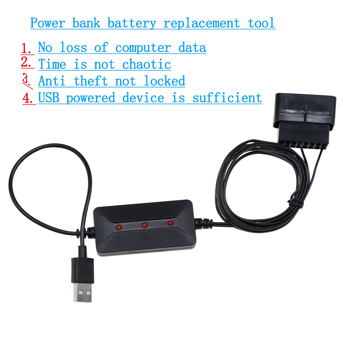 利用充电宝当作存储电池,接上,并插到OBD,保持车有电,就可以去换汽车旧电瓶了,仅仅一个充电宝即可,无需备用电瓶